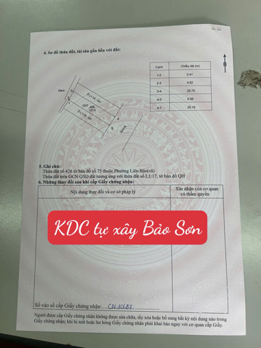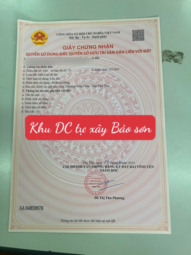 BÁN LÔ ĐẤT ĐẤU GIÁ HỒ BẢO SƠN, LIÊN BẢO, VĨNH YÊN DT127m MT5m sẵn sổ sang tên 5,08 tỷ
