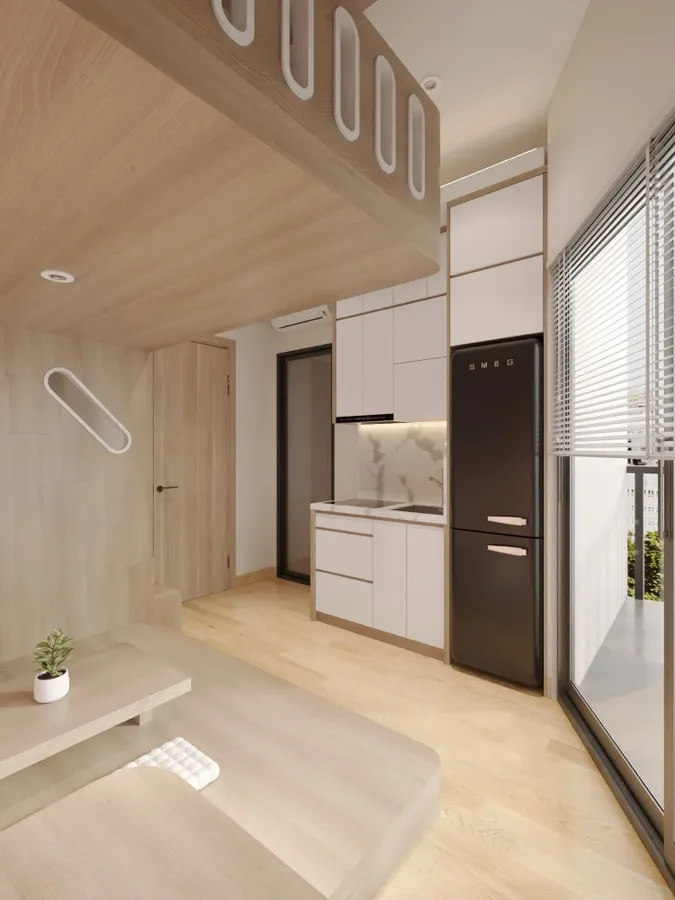 + Tầng 1: Thông sàn để xe