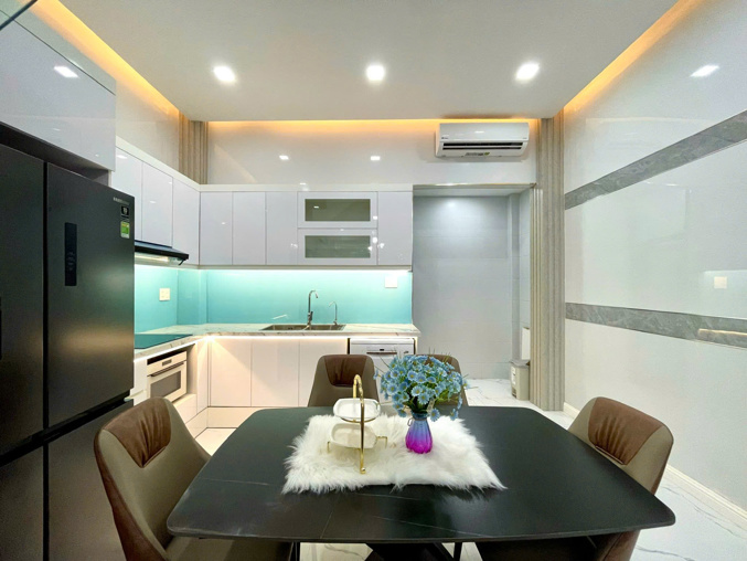 -Cấu trúc: 1 trêt 2 lầu sân thượng. Gồm 1 phòng khách, 1 phòng bếp, 4 phòng ngủ, mỗi phòng có WC, nhà thiết kế đẹp, Full nội thất cao cấp, quý khách chỉ xách vali vào ở.