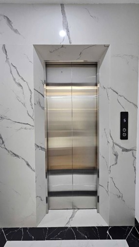 Nhà xây mới 5 tầng có thang máy, thiết kế hiện đại, công năng hợp lý, mặt tiền rộng và thoáng, hình thế nhà đẹp, tạo cảm giác bề thế và giá trị cao. Các phòng đều có cửa sổ, đón ánh sáng tự nhiên.