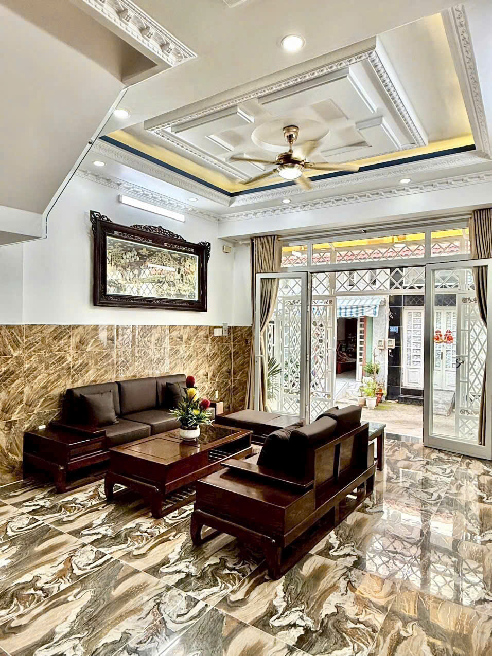 -Cấu trúc: 1 trệt 2 lầu gồm 1 phòng khách, 1 phòng bếp, 4 phòng ngủ, 5 WC, nhà xây kiên cố cắc chắn, thiết kế đẹp, nội thất sang trọng.