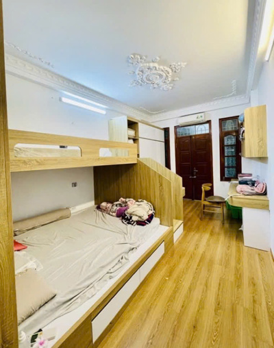 Nhà xây 4 tầng khung cột chắc chắn, mặt tiền 4m, thiết kế 5 phòng ngủ rộng thoáng, trước nhà gần 3m, để xe thoải mái, không gian sáng và sạch. Phù hợp an cư, ở nhiều thế hệ hoặc kết hợp cho thuê.